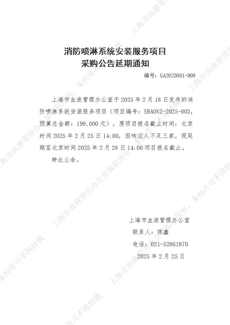 消防喷淋系统安装服务项目采购公告延期通知