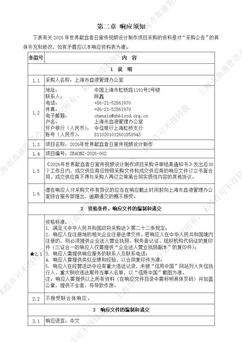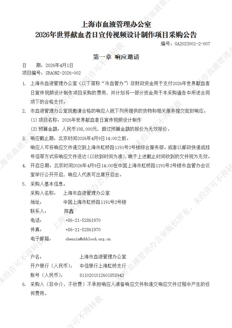 2026年世界献血者日宣传视频设计制作项目采购公告