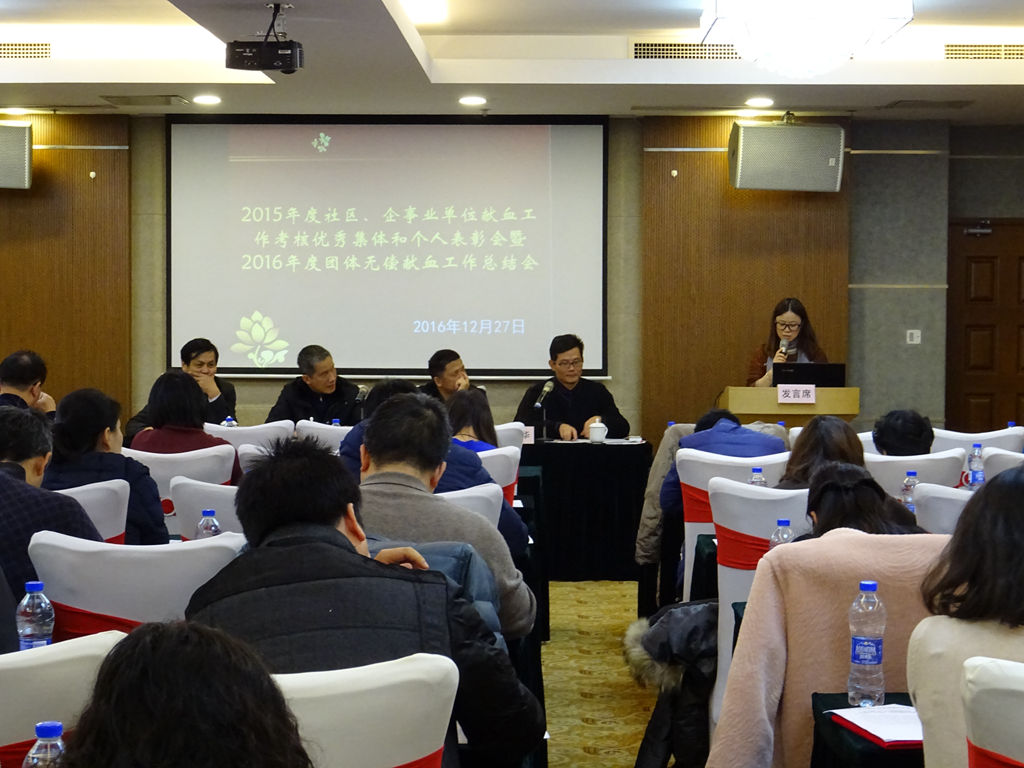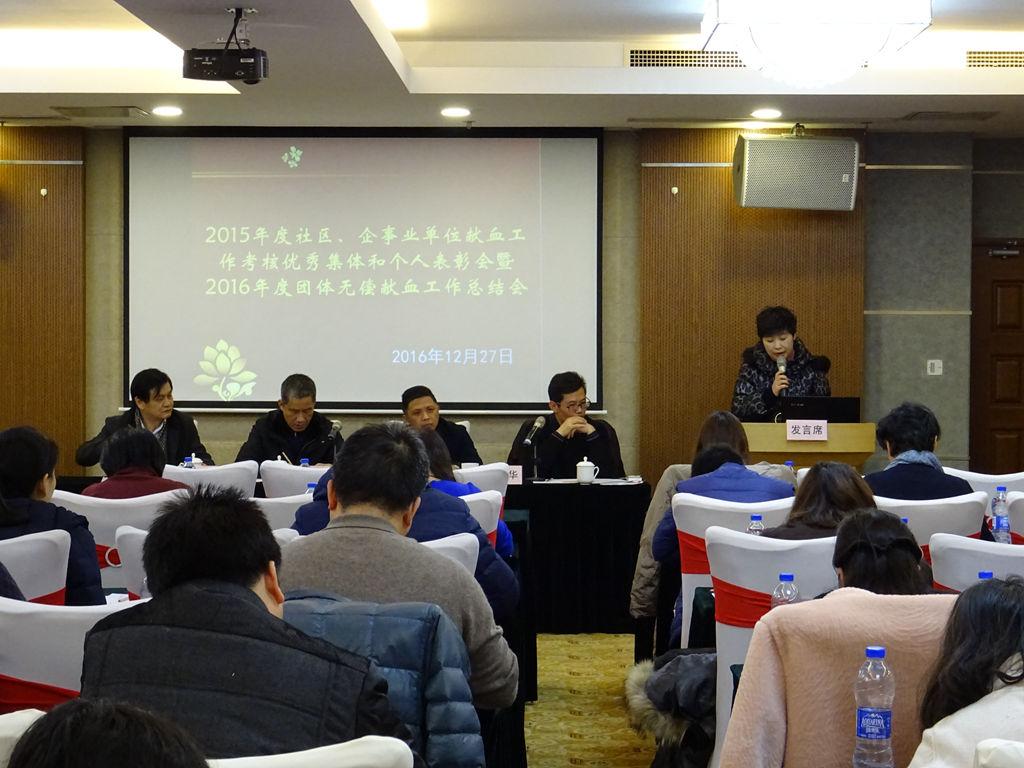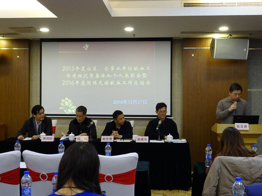 会议上,俞处长分别通报表扬了荣获二〇一五年度社区、企事业单位献血工作考核市级优秀集体、优秀个人和区级优秀集体、优秀个人。街镇优秀代表张利俊、企业优秀代表陈铭、局委办优秀代表李黎洁分享了献血组织工作的经验和感受。