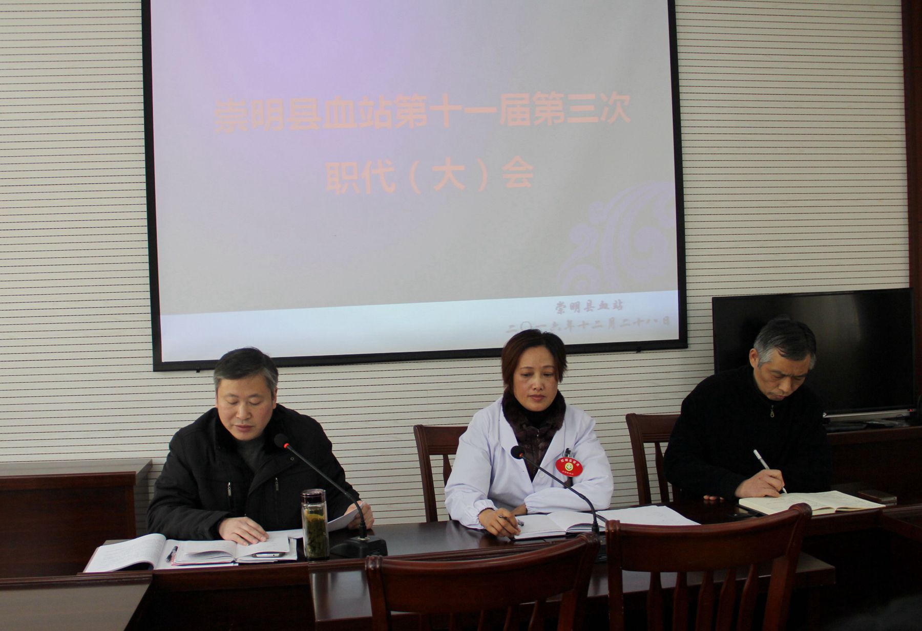 2016年12月28日上午,崇明县血站召开了第十一届第三次职代(大)会,出席这次会议的共有24名会员,会议由工会主席王琴作主持,范学东站长作了《崇明血站2016年工作报告》和《崇明血站绩效工资分配方案》部分调整的报告。