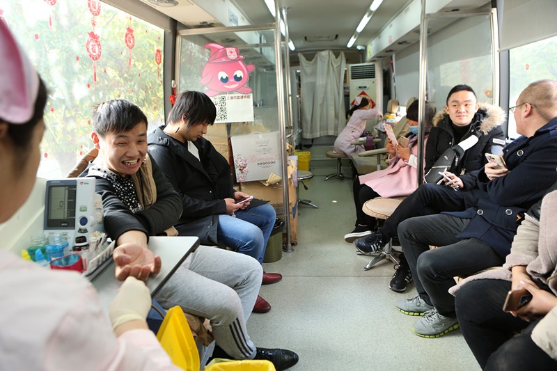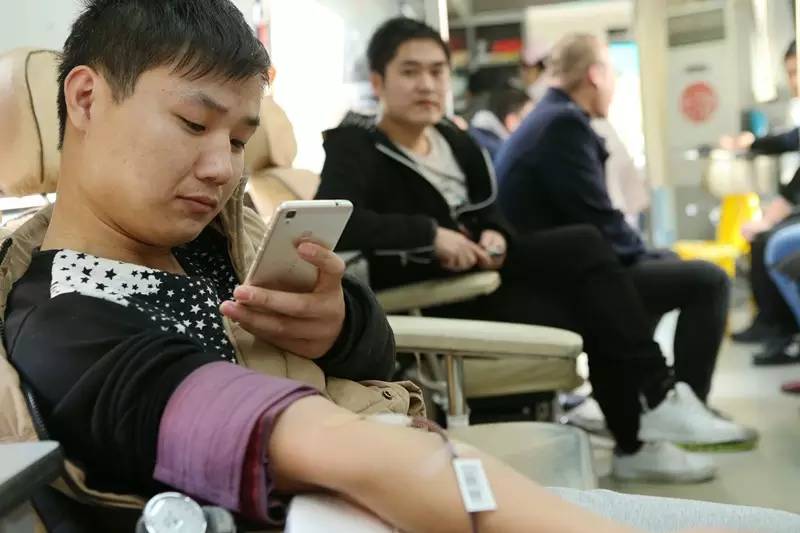献血时,刘可可还不忘掏出手机自拍照片发到微信朋友圈晒自己的爱心。在广州、上海曾献过5次血的宗昌玉也赶来再次献血400ml。闫立森在深圳、广东、河南等地先后献血8次,看到爱心献血车,二话没说跑去又献血400ml。