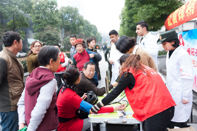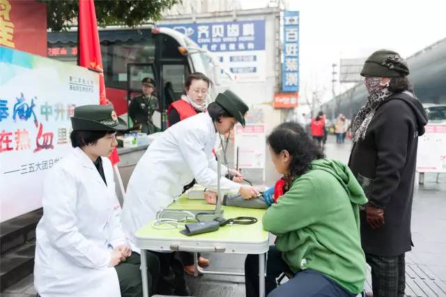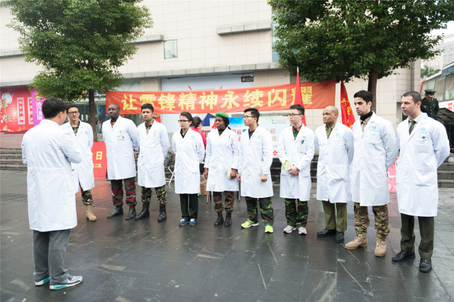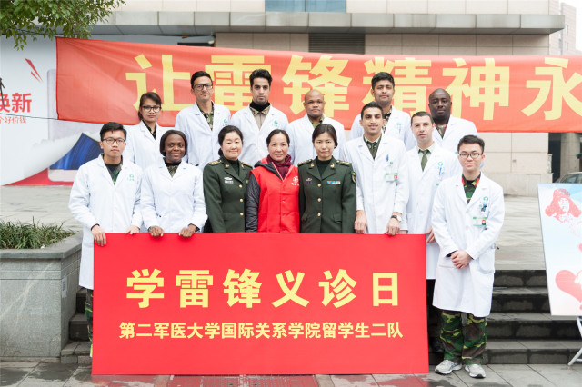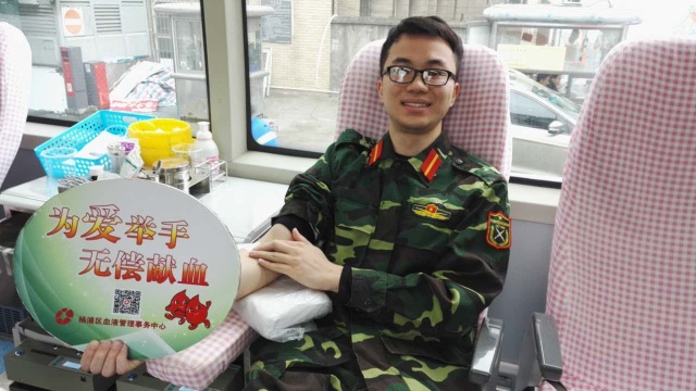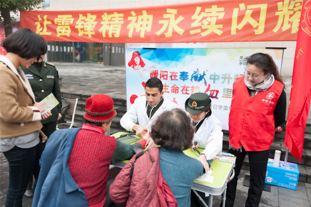 3月5日上午,身着军装的第二军医大学学员们划着整齐的步伐来到杨浦区爱心献血点位,开展“学雷锋”无偿献血宣传与义诊活动。据悉,这是学员们自发组织的系列公益活动,旨在运用自己所学的医学知识服务社会,将雷锋精神融入志愿活动,为公益事业做出贡献。今年的学雷锋日活动,无论从参与人数,还是服务内容,都较往年提高了不少,特别是二军大基础部生物技术队的学员们报名踊跃,活动还吸引了国际关系学院的留学生们,来自不同国家的医疗部队学员团队首次加入到志愿者行列,为市民们测量血压、义诊、介绍血液和无偿献血知识。