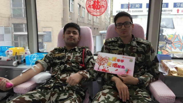 活动最后,学员们纷纷表示:“今天我们一起献血,挽救生命吧。”“OK、OK。”“yeah,Good idea,我们要帮助更多的人。”“献血用护照可以吗?”“可以的。”“好的,那我们上车填表、检测吧。”……“献血后感觉怎么样?”“非常好!”望着一袋袋热血,二军大学员与留学生们仿佛成为了他们心目中的英雄“戴斯蒙德”,而雷锋精神的种子在这里播撒着。