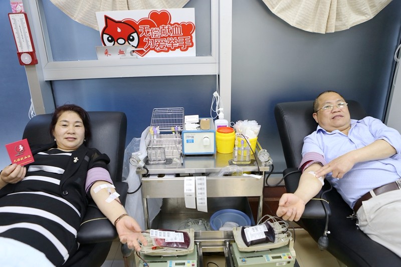 爱心夫妻翁钟锐、林忠美趁着假日赶到七宝爱心献血屋,分别献血400毫升。两人已坚持献血五年。