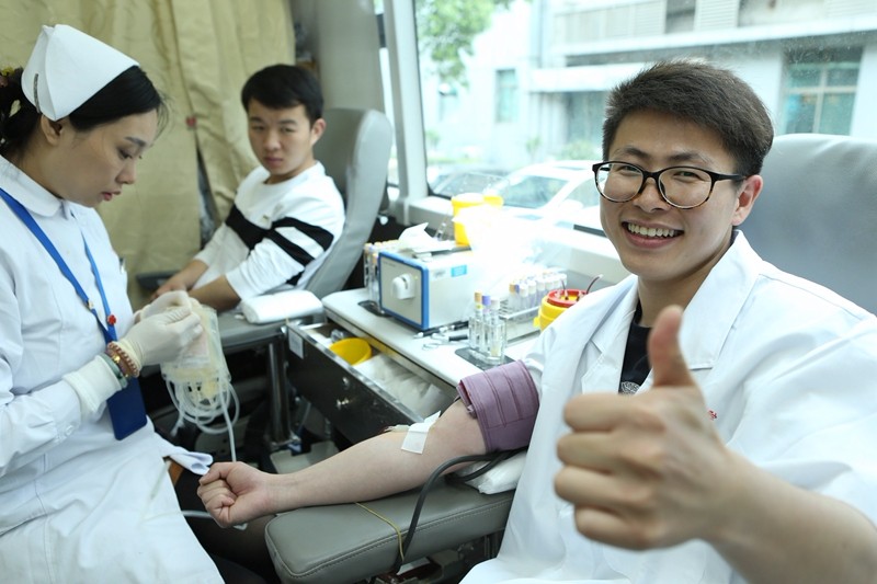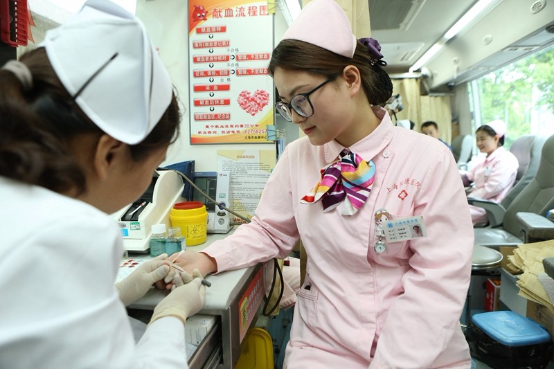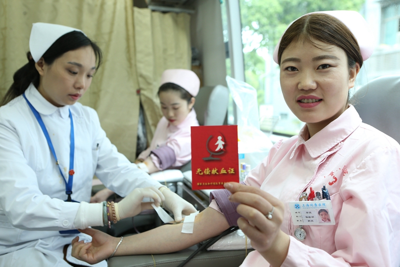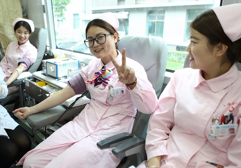 闵行区:“五四”青年节 年轻医护人员争相无偿献血表爱心
