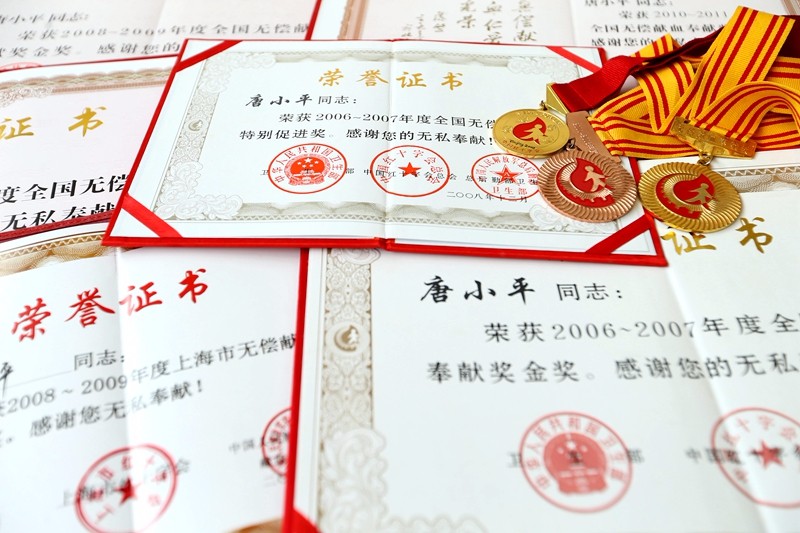16年来,唐小平捐献全血从200毫升转为400毫升,后来选择捐献血小板,从国家规定的间隔期28天再到14天,唐小平几乎是掐着时间奉献自己的鲜血。在自己的家乡福州、出差地北京、深圳,还有打工地上海,都留下了唐小平的热血浓情。73本(张)鲜红的献血证记录着唐小平的无私大爱。唐小平这次“故地重游”来献血,车旅费、住宿费、就餐费等至少上千元,对此,他大手一挥:“这是小意思,只要能帮助到急需要输血救治的患者,值得。”