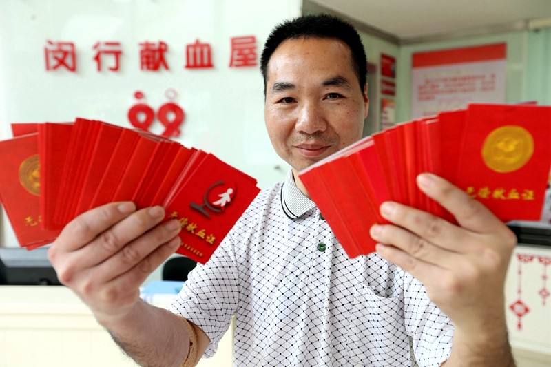 闵行区:36岁男子为报恩 16年捐献全血、血小板达189次
