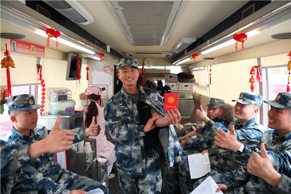 “作为一名军人,能以无偿献血的方式帮助他人,我觉得很有意义。” 3月5日是学雷锋纪念日,驻上海市闵行区古美路街道空军95958部队的列兵李宏宇和40余名战友,登上停靠在部队大院的献血上捋袖无偿献血,以实际行动践行雷锋乐于奉献的无私精神。