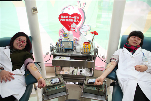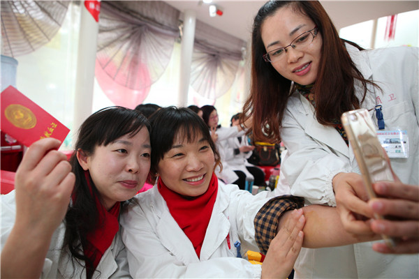 “‘三八节’到了,献份热血帮助急需要输血救治的患者;也算是庆祝下我们的节日吧。”日前(3月5日),上海闵行颛桥社区卫生服务中心的王莉芸、陈佳玥、徐庆、姚迪等白衣天使在梅陇爱心献血屋捋袖献血时这样说。