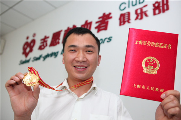 闵行区: 上海市劳模夏龙须 13年无偿捐献热血136次