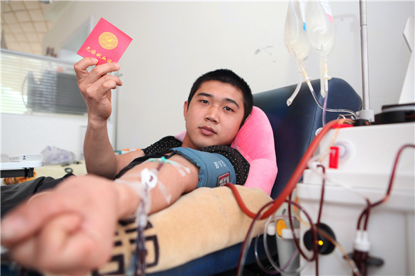 在外漂泊的日子,虽然很辛苦,但,张江却不忘坚持奉献自己的热血帮助他人。“温州4次全血累计1600毫升、宁波1次血小板、丹阳10次血小板、北京6次血小板、上海31次血小板。”17本鲜红的无偿献血证书上密密麻麻地记录着张江的献血次数。特别是他捐献的血小板,绝大部分为双份。