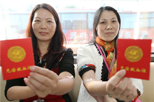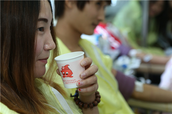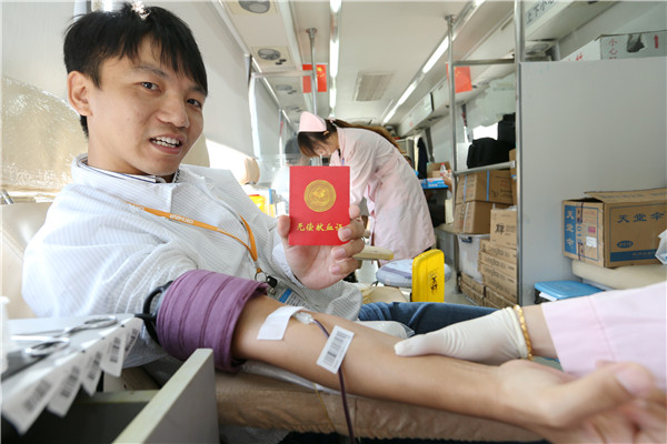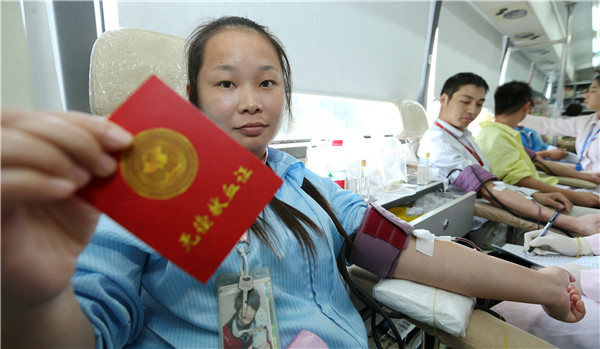 早上8点不到,献血车刚停靠到英华达公司行政大楼门口,数十名员工已等候在此。大厅里专门辟出献血接待服务区域。接上献血车电源、摊开宣传展板,一切就绪后大家依次填写献血登记表、体检、献血。“每次献血车来,我都会参加献血,这次再献400毫升。”第一个献血的王小锋这样说。有着多次献血经历的陈美认为,献血是利人利己的事情。看上去瘦瘦的她这次又献血400毫升。第一次献血的张丽丽,坐上采血椅时,有点忐忑,经过采血护士的安抚,淡定了许多。当她看着自己的鲜血缓缓地流进血袋时,张丽丽笑着说:“没有人家讲得那么可怕嘛!”献血400毫升的台胞李政勋表示,自己献血多少次早记不清了,他认为能帮助到他人是件快乐的事情。同样身为台胞的郭信助,从成年开始献血,已累计无偿捐献10000余毫升热血。这次他又献血400毫升。一波接一波,大家穿着工作服,献血完止血、休息后再重返工作岗位。一天时间里,共有149名员工无偿捐献45000毫升热血。现场始终洋溢着感人的氛围。