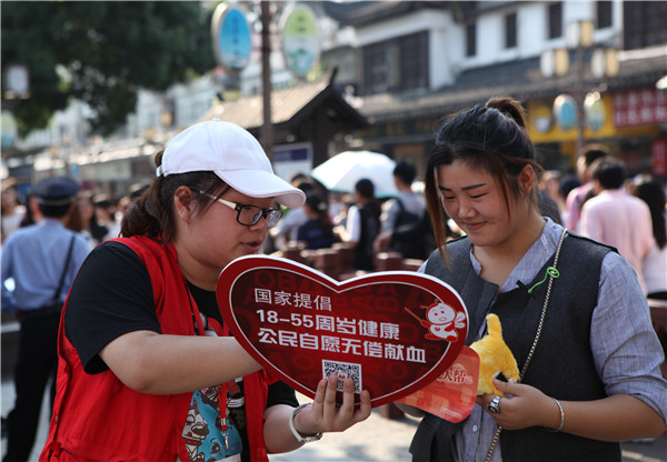 闵行区: 国庆长假,闵行区250余名“红马甲”街头举牌宣传无偿献血