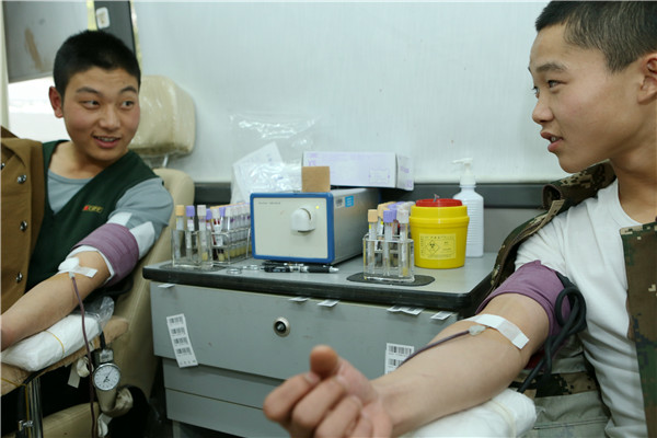 停靠在虹桥黄桦路上的流动献血车迎来了一群“橄榄路”,他们是驻闵行某武警部队的官兵刘明、彭少龙、严伟晨等。20岁出头的他们在用青春维护城市安全的同时,还慷慨奉献热血,着实让人敬佩。