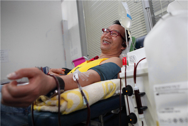 闵行区: 从“小伙”到“大叔” 五旬“型男”坚持献血30载