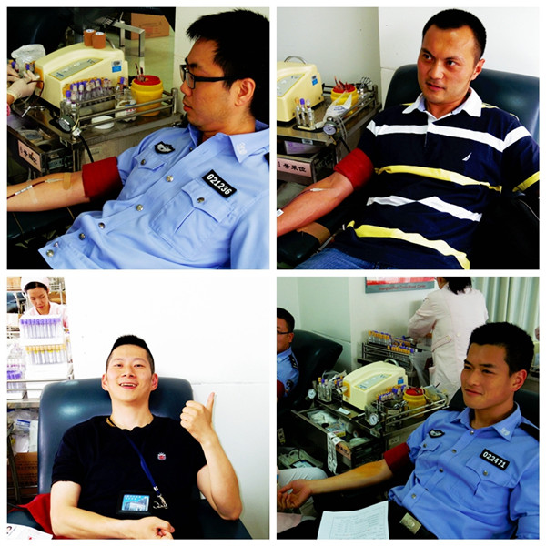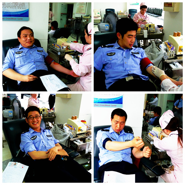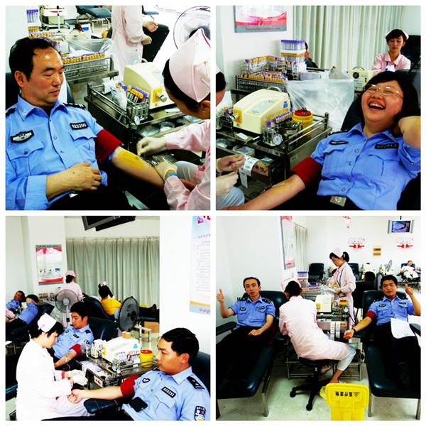 2015年6月2日,徐汇公安分局一年一度的无偿献血活动如期在上海市血液中心举行。当天上海受降雨云团影响,上海中心气象台先后发布雷电和暴雨黄色预警,但徐汇区分局各单位的民警、文职员工仍准时来到血液中心参加献血活动。本次活动共有150余人次参加,共募集血液21800毫升,我们的公安民警以良好的精神风貌和出色的实际行动,为社会公益事业献上一份爱心。可爱的公安民警,你们是真正的生命卫士!