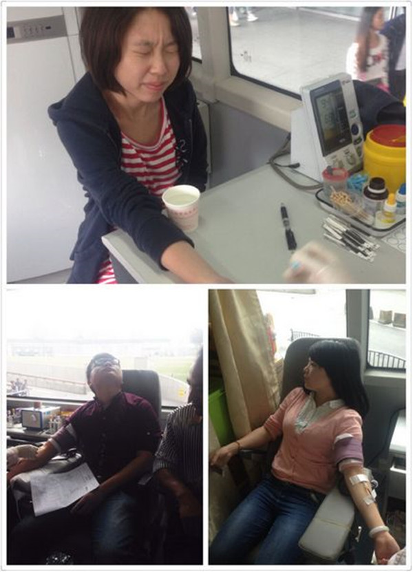 接着上来一公司老板,同行的有两人,老板遗憾自己没有通过体检,便劝说同行的男子尝试一下,男子有点“小犹豫”,对工作人员左询问右询问,经过“强烈的思想斗争”的他顺利通过体检,伸臂献了400ml献血,用他的话说:“其实第一次听说要献血我是拒绝的,因为我不愿意一针抽不出,再加一些特技上去,血就咣一下很多,我也会咣的一下昏倒,这样的话我下次一定不再献了,后来我经过证实献血确实是没有想象中的可怕!”幽默的男子,瞬间活跃了现场的气氛!