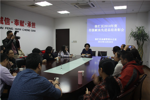 2015年10月29日下午,徐汇区血液管理办公室召开了徐汇区2014年度上海市献血工作优秀集体、优秀个人总结表彰会,本次荣获上海市2014年度无偿献血工作先进集体和先进个人的献血组织者出席了此次会议。