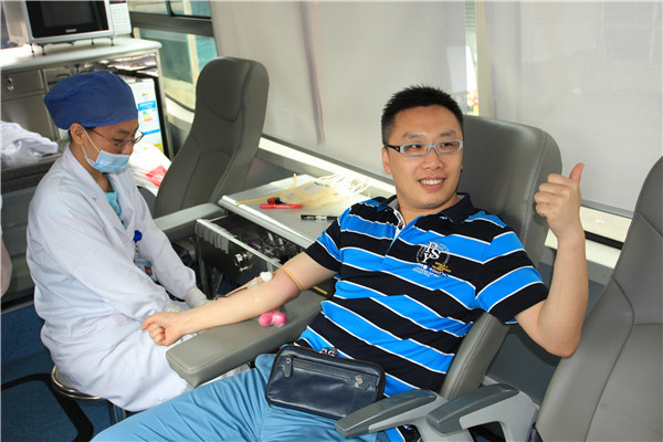 6月9日上午,“杨浦区庆祝第十二个‘6.14世界献血者日’暨流动采血车发车仪式”在五角场邯郸路苏宁生活广场举行,会上启用了新的流动采血车,三湘集团有限公司50多名职工上车献血,采血车使用首日“开门红”。