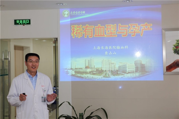 会议由杨浦区血液管理事务中心的唐琴主任主持,特邀长海血站查占山主任为志愿者们讲授稀有血型的注意事项尤其是女性RH阴性血的孕产问题。
