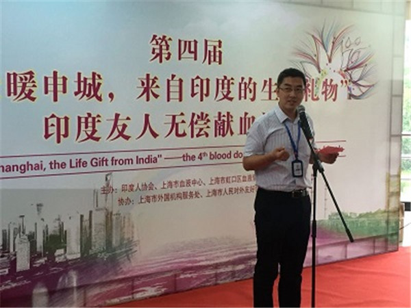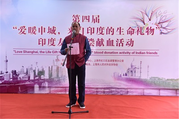 9月11日上午,由印度人协会、上海市血液中心、上海市虹口区血液管理办公室、上海市外国机构服务处以及上海市人民对外友好协会共同举办的第四届“爱暖申城,来自印度的生命礼物”印度友人无偿献血活动成功举行。印度驻沪总领事Mr.Prakash Gupta、印度人协会主席Mr. Raj Khosa、上海市血液中心主任陆韬宏、副主任张晰、上海市外国机构服务处主任蒋惟坚、上海市虹口区医务工会主席李峰、上海市虹口区血液管理办公室主任何琨、上海市人民对外友好协会代表宋春临及百余名印度献血者出席本次活动。