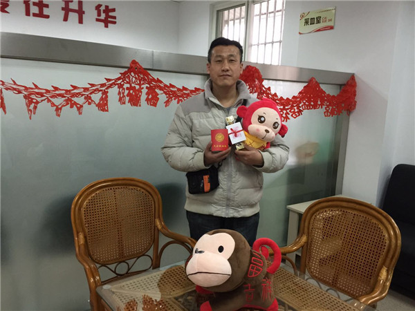 新年第一天上班就迎来了情人节,在情人节我们开展了送巧克力、吉祥猴活动。站内有两位志愿者参加了成分献血,共献单采血小板4个单位,流动车上也有好几对情侣参加无偿献血,共度佳节。我们对他们的举动表示感谢。