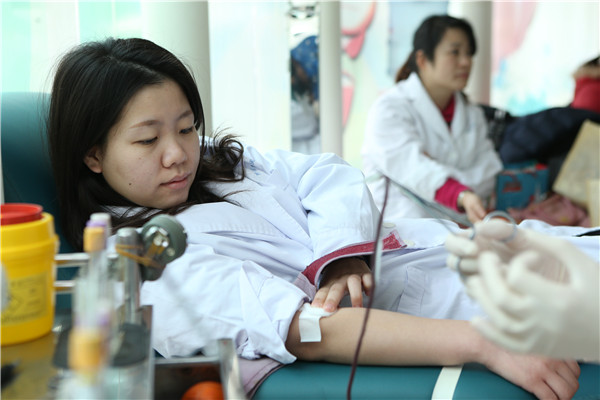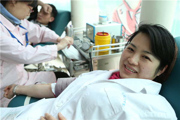 1月27日,闵行区肿瘤医院的虞红、刘敏、叶菲菲等6名白衣天使,她们结伴冒着小雨来到梅陇献血屋争相捋袖献血。来自医疗办的虞红是第2次参加献血。她等待献血时,还用手机不停地帮献血的同事拍照留念。门诊部的刘敏虽然是首次献血,却淡定自如。“90后”的叶菲菲是外科的一名护士,看上去很苗条,也慷慨地献出一份爱心。当日,因坚持10余年参加无偿献血被誉为“献血达人”的七宝社区卫生服务中心的夏龙须,也来到梅陇献血屋再次捐献了一份血小板。