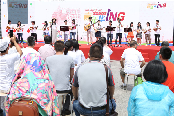 志愿者为以尤克里里弹奏的方式宣传无偿献血,将整场活动推向高潮。