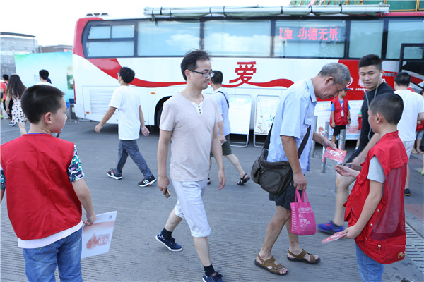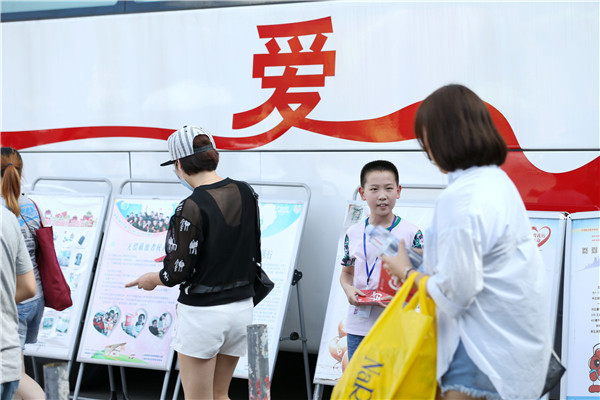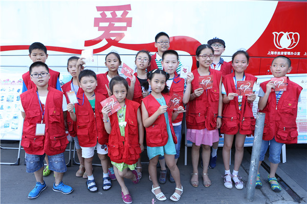 8月7日,在莘庄地铁站南出口献血车看到10余位孩子,手握无偿献血宣传资料,向来往行人不厌其烦地宣传无偿献血。10岁的卫炜是第三次参加这个活动了。他的妈妈是一位护士,也是一名献血志愿者。卫炜特意穿上妈妈的志愿者T恤,因为T恤上印有“血液连接你我”字样,在人群中很显眼。小家伙手握无偿献血宣传资料见人就递上去,有人接过宣传单咨询他会开心地跳起来,面对拒绝,他也会懊恼。卫炜说:“能当献血宣传志愿者,让更多的人参与献血救人很开心。长大后也会无偿献血,帮助身患白血病的小朋友。”巧合的是当天还是卫炜10岁的生日。12岁的范加勋是第一次参加这样的活动,总是冲在最前面。每一次向他人递上宣传单时,总会礼貌地说:“爱心献血,帮助他人。谢谢。”在阳光的照射下,孩子们个个满头大汗,却没有一个叫苦叫累的。都表示,以后还会参加这样的活动。