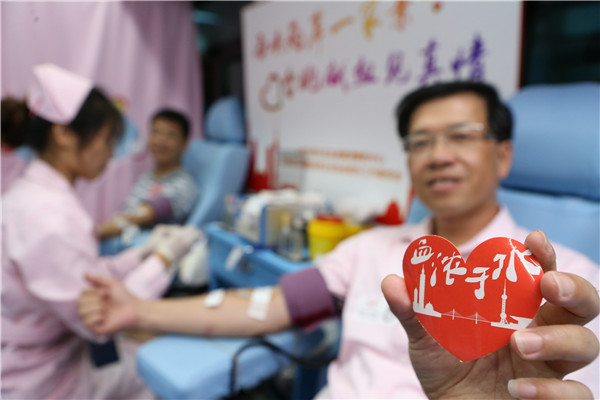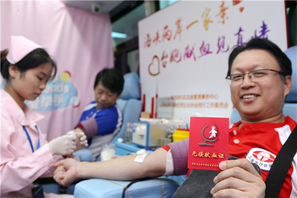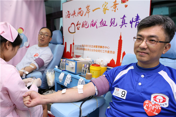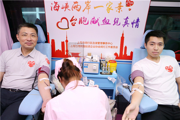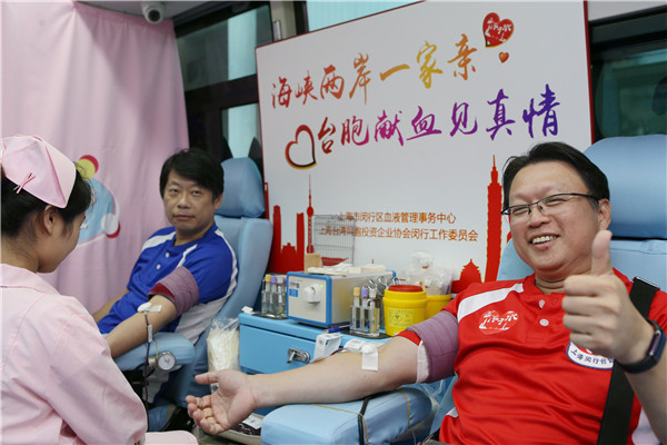 “海峡两岸一家亲,台胞献血见真情。”9月10日,由上海市台湾同胞投资企业协会闵行区工作委员会主办的“爱心闵行•你我同行──闵工委2016中秋活动”在位于闵行区金辉路上的上海台商子女学校举行。主办方主动把流动爱心献血车召集到现场,动员大家参加无偿献血。20余名参加活动的台胞争相无偿献血的感人瞬间,成了当晚活动上一道别样的风景线。