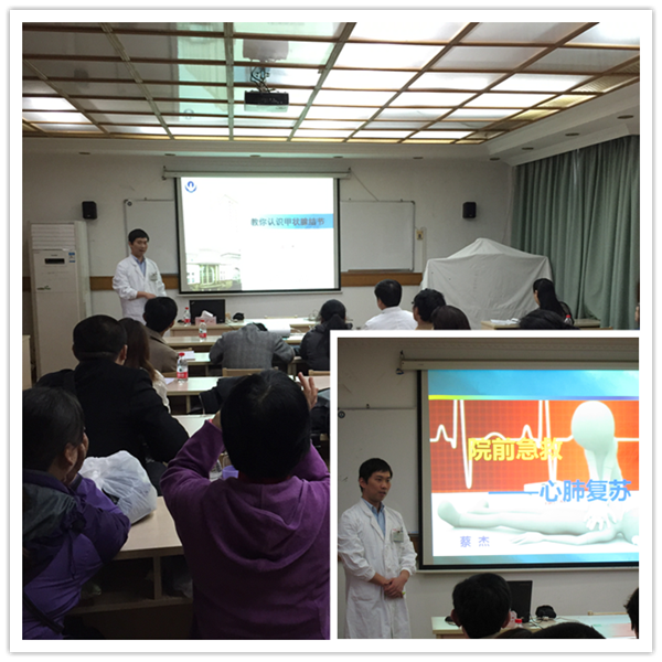 “医疗科普微讲座”区血液管理办公室特别邀请了普陀区中心医院普外科副主任医师蔡杰担任主讲人。蔡医生结合临床实际,通过生动的图片演示和诙谐幽默的语言为无偿献血志愿者进行了院前急救和甲状腺结节方面的科普宣传,让大家获益匪浅。