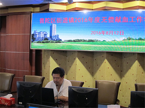 2016年8月12日,普陀区血液管理办公室组织召开了普陀区街道(镇)2016年度无偿献血工作年中总结会议。会议总结回顾了2016年上半年各街道(镇)无偿献血任务完成情况,并布置了下半年无偿献血工作安排。区血管办主任王宁华希望各街道(镇)下半年进一步做好无偿献血招募工作以及年底的应急献血筹备工作,保质保量完成全年的无偿献血任务。