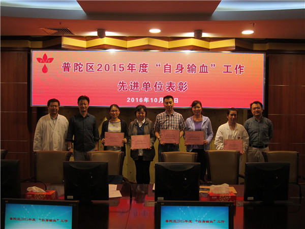 会议还对同济医院、普陀区中心医院、普陀区人民医院、普陀区利群医院、德济医院等5家荣获“普陀区2015年度自身输血工作先进单位”的医疗机构进行了表彰。会上,区卫计委医管科沈峻科长指出,各临床用血医疗机构要进一步细化各项工作,积极做好下阶段临床用血考核工作。同时,要进一步推进自身输血工作,做到科学合理用血,在日益增长的临床用血需求下,保证工作质量和血液供应,不断提高我区临床用血工作水平。