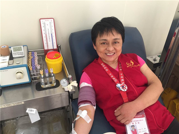 说起如何走上献血的这条路时,时光便回到了二十年前,1996年6月的某天,她带着15岁的女儿在逛街时,东方商厦门前流动献血车吸引了她,曾经因手术而输过血的她见了献血车就有种莫名的亲切感,她还清楚地记得当时的口号是:“献血无损健康,只需您一点点小小的勇气”,于是她就鼓足勇气走上车,顺利的通过体检,献出了人生中第一袋热血,从此,她便加入了固定无偿献血者队伍,并且也加入了徐汇区无偿献血宣传招募志愿者队伍,女儿在她的带领下也加入了无偿献血队伍,二十年间她总共献血136次,其中捐献血小板127次,收获了2008-2009年度、2010-2011年度、2012-2013年度全国无偿献血奉献金奖;2008-2009年度、2010-2011年度、2012-2013年度上海市无偿献血纪念奖、白玉兰奖;2010-2011年度全国无偿献血志愿服务终身荣誉奖等奖项,她说长期的坚持让无偿献血变成了一种习惯、一种自然、一种理所应当,以后虽然不能再献血了,但她还有一腔热情,还可以动员更多的人来加入这个队伍。