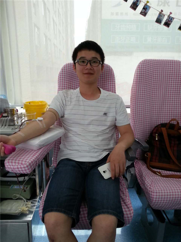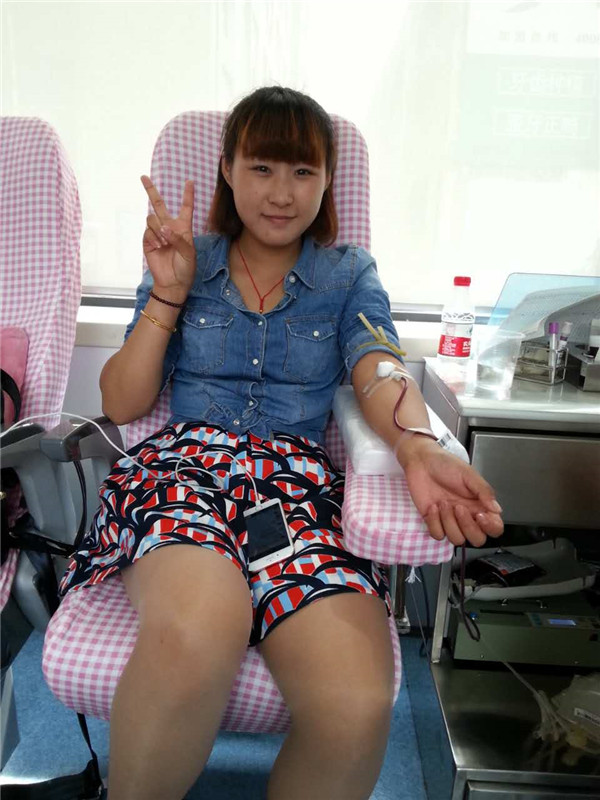 我们走上采血车,见到一位年轻献血者,她叫石梦洁,今年23岁,下个月即将读研的她,选择生日当天再次无偿献血。虽然室外烈日炎炎,举步维艰,但这丝毫未能动摇她爱心奉献的决心。她注视着自己的血液从导管中流出,在彼此的话语间,血袋已经注满。当工作人员为她递上《无偿献血证》并盖上生日纪念章时,她微笑着说道,这一天这一刻终于实现了自己的心愿,能在特殊的日子做有意义的事是令人难忘的,以后还会定期参加献血。
