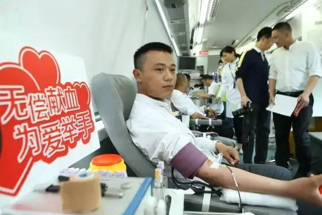 个子高高的刘洋第一个登上献血车,体检合格后,他二话没说,伸出手臂献血400ml。这是刘洋第六次参加无偿献血。从大学时开始献血的他对献血知识相当熟悉,一边献血一边不忘给初次献血的同事“普及”献血知识。