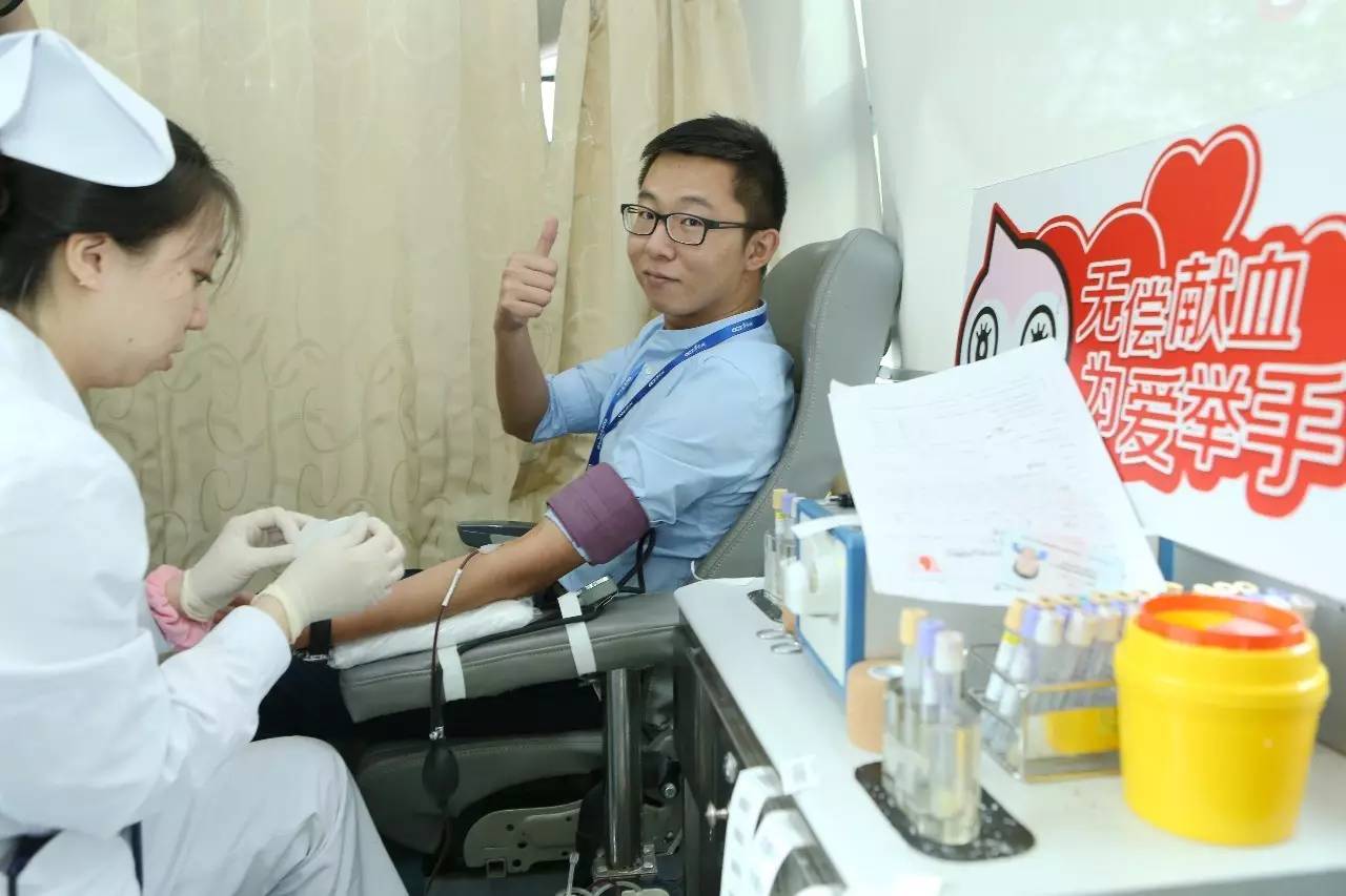 何燕飞献出400ml鲜血后说:“我在老家安徽等地献过10多次血,献血救人,不但无损健康还能促进自身血液循环,是一举多得的好事。”办公室主任李永忠也是第二次参加献血。张煜是行政主管,也是本次献血活动的召集人,忙前忙后的她忙碌完毕后也欣然献出自己的鲜血。当采血护士告知其献血完毕时,正在看微信朋友圈的张煜惊讶地说:“这么快呀!我连一篇文章还没看完呢!”第一次献血的朱军体检合格后迫不及待地问自己的血型是啥型,当得知自己是AB型血时感慨地说:“要不是参加献血,还不知道自己的血型呢!”献血400ml后朱军盘算起下次的献血时间。