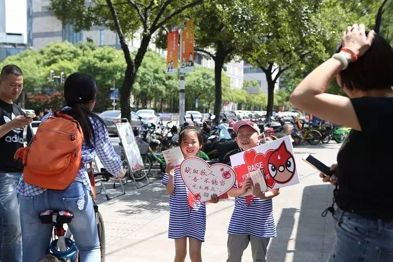 来自闵行区卫生系统的丁丽珍、姚笛结伴带着各自的孩子赶到停靠在仲盛世界商城南广场的献血车上,尽管太阳当头,两小朋友却不时穿梭在人群中向行人发放宣传资料。区卫计委的马春怡,血液中心护士陶叡宇也带着孩子来到七宝爱心献血屋参加了此次活动。据了解,这已是闵行区血液管理事务中心、献血促进会连续第五个年头开展“爱,让我们携手成长”的活动了。希望通过爱心献血点平台让更多有公益意愿的孩子零距离接触公益,从小树立参与公益意识。