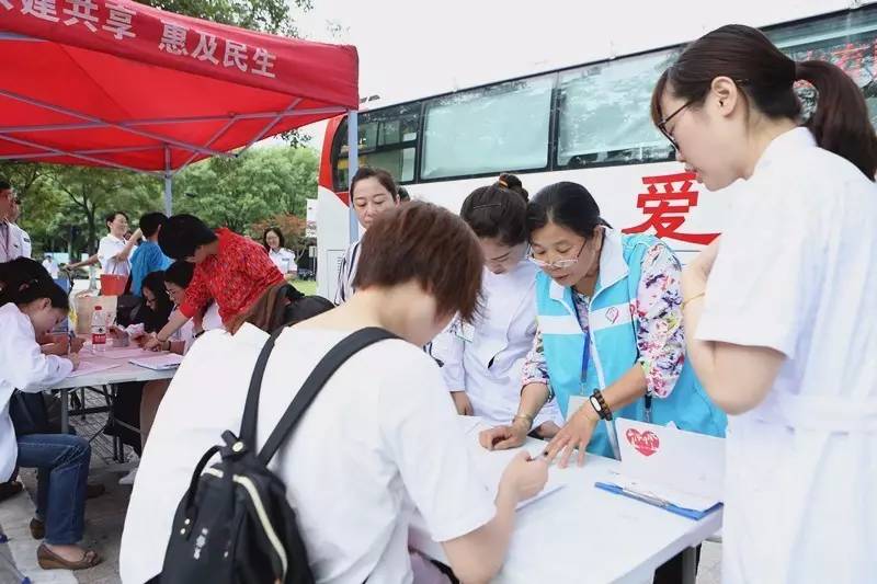 当日,吴泾社区卫生服务中心的孙欢、朱小峰等10余名医护人员赶到停靠在吴泾永德路步行街的爱心献血车纷纷献出鲜血。另外,闵行区肿瘤医院,古美、马桥社区卫生服务中心,分别前往献血屋(车)献血。
