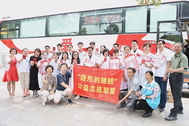 “隐形的翅膀”公益志愿者联盟合作成员闵行区规划和土地管理局、区医疗急救中心、浦江社区卫生服务中心、颛桥社区卫生服务中心等单位的数十名志愿者,从四面八方赶到仲盛世界商城南广场的献血车上,慷慨献出各自的热血真情。