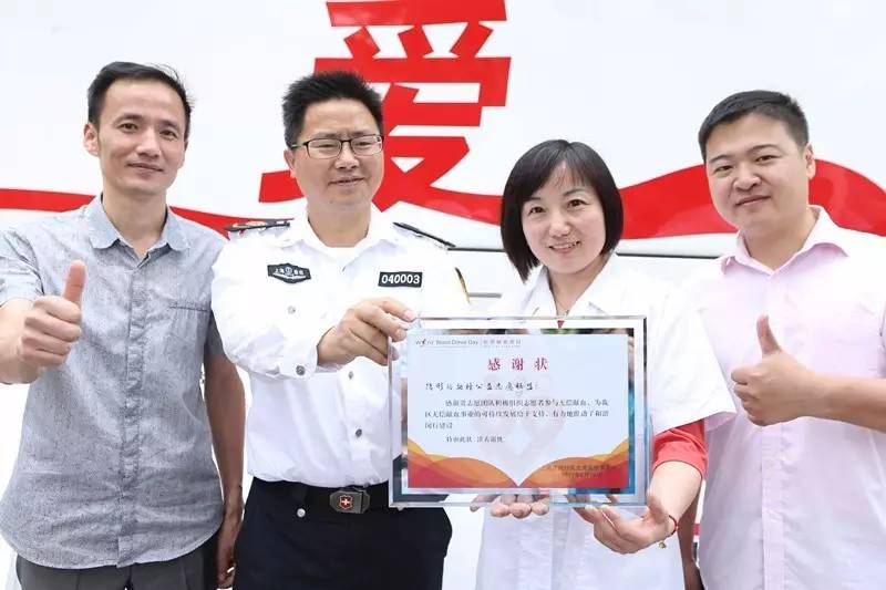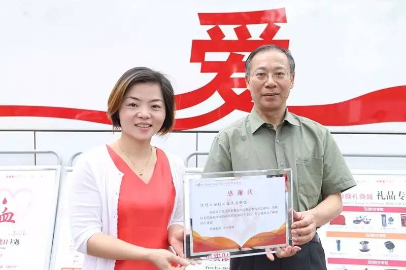 闵行区血液管理事务中心负责人吴燕在现场,向“隐形的翅膀”公益志愿者联盟颁发了感谢状,感谢他们无偿献血挽救生命。