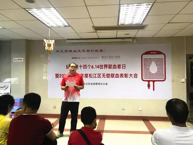 6月22日上午,松江区血液管理办公室和松江区血站联合召开了简短而隆重的无偿献血表彰会,全区无偿献血志愿者代表80余人参加会议。