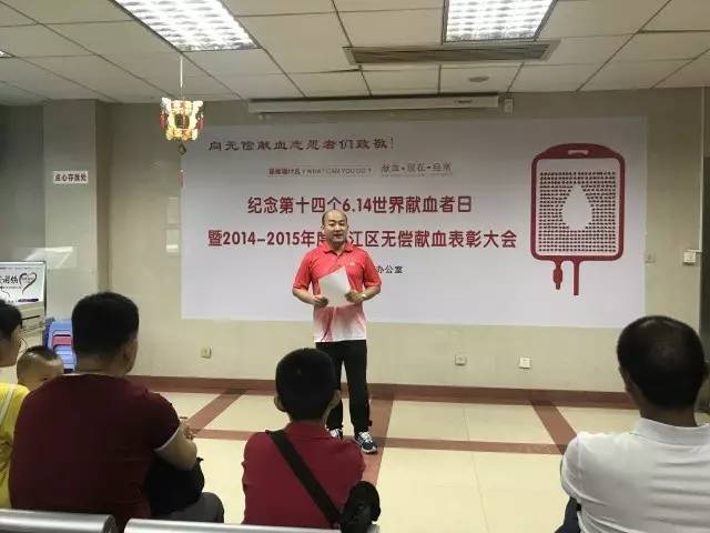 松江区血站党支部书记陆军在会议上总结回顾了2014~2015年来松江区无偿献血工作的开展情况。
