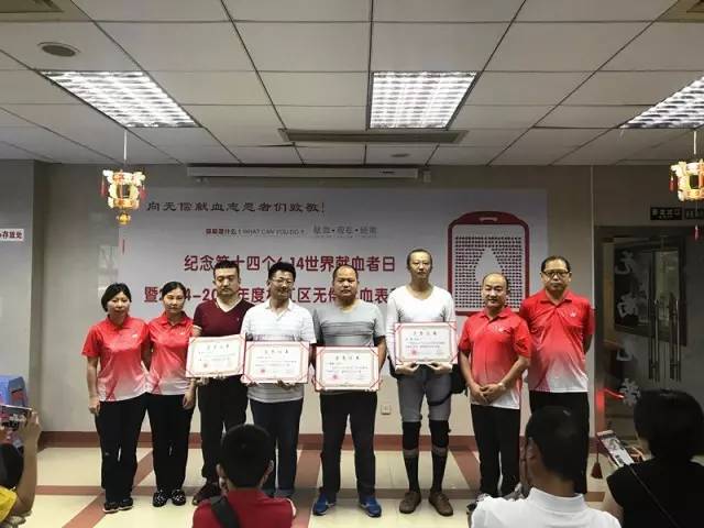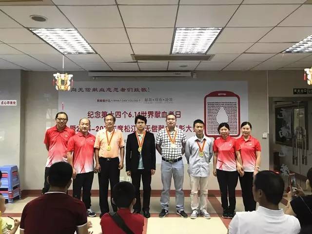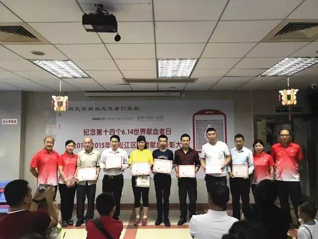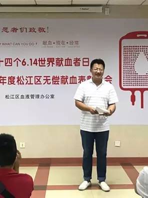 松江区血站站长盛金星对无偿献血工作中做出突出贡献的志愿者表示感谢:全国无偿献血奉献奖金银铜奖、上海市无偿献血白玉兰奖、上海市无偿献血纪念奖和无偿献血星级志愿者等获奖者进行了表彰,并颁发了荣誉证书。