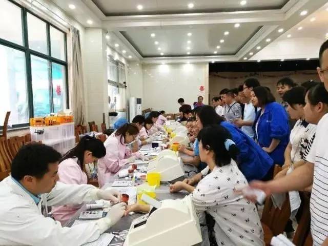 健康检查:大家依次进行填写登记表、体检化验、献血,一切井井有序,有条不紊。