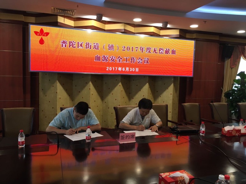 为继续推进街道(镇)团体无偿献血工作,保障血源安全,2017年6月30日下午,普陀区血液管理办公室在普陀区中心医院第一会议室召开“普陀区街道(镇)2017年度血源安全工作会议”。