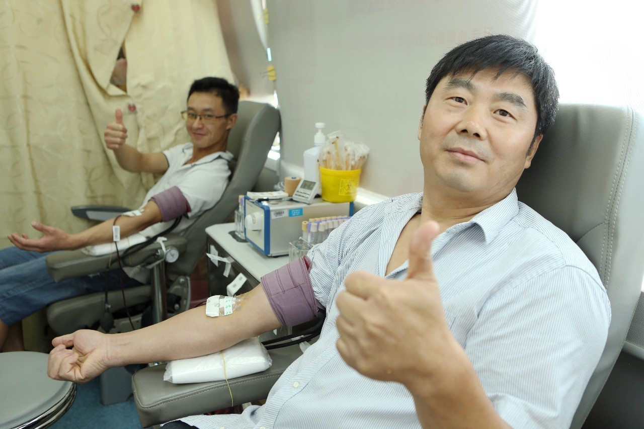 第一个献血的黄霞本来在家休息,得知有献血活动特意赶来。首次献血的黄霞献出200ml鲜血后表示:“头次献血,先尝试一下。下次献400ml。”同样是首次献血的郭虹说:“献血,是一件很轻松的事。”