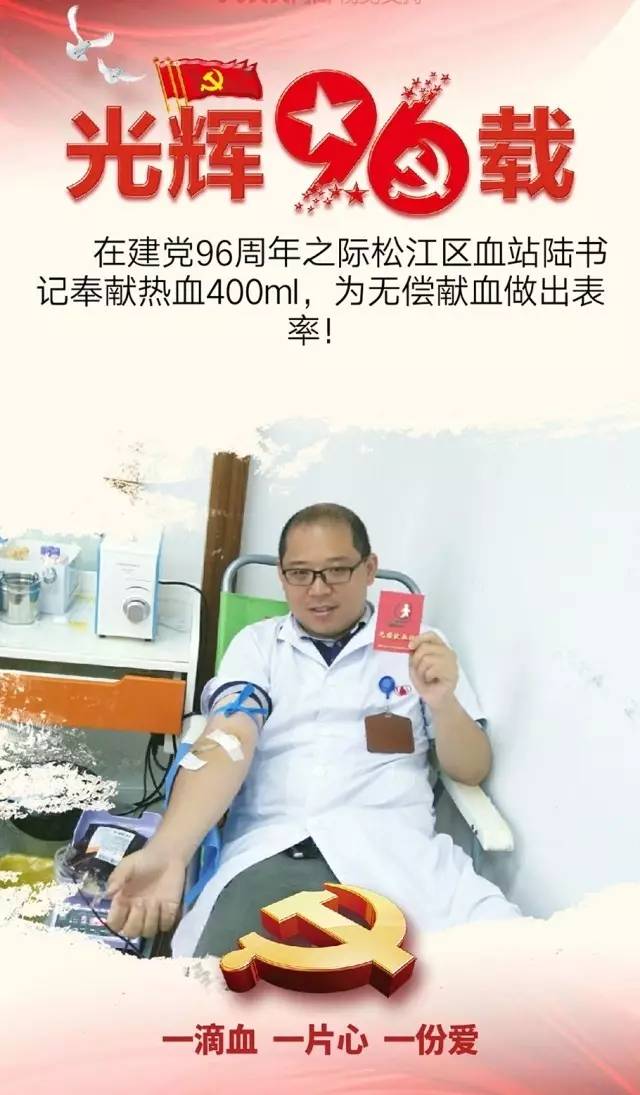 据了解松江区血站党支部目前党员14人,除了两位党员同志因身体原因不符合献血条件的以外,其他全部是定期无偿献血者。