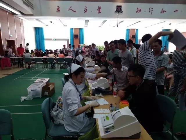 2017年7月13日早上8点,虽然时间尚早,可在商外进修学校的门口早已排起了长长的队伍,他们都是参加本次献血活动的长桥街道普通居民,虽然当日的温度高达38℃之高,但是无法阻拦他们献血的脚步。