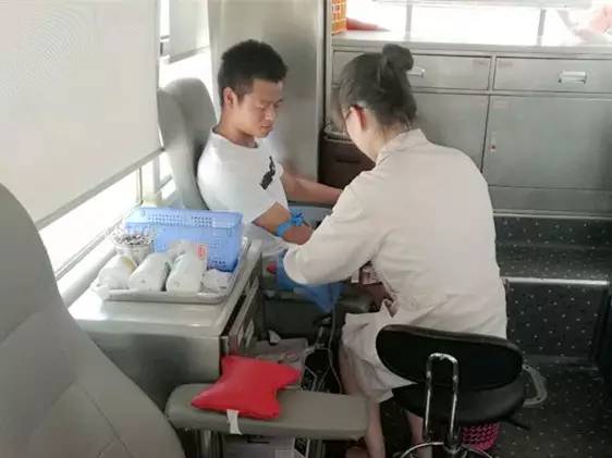 尽管车上温度火热,依旧坚守在岗位上等您来献血!